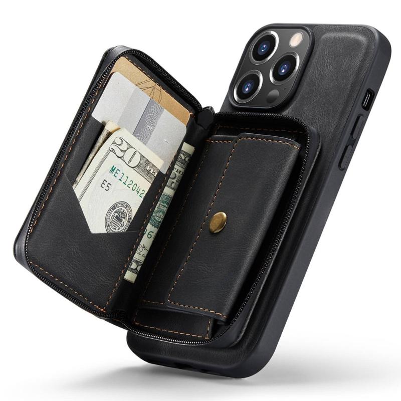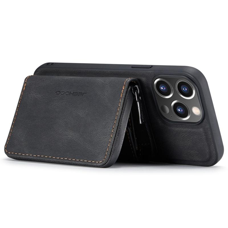 JEEHOOD telefondeksel for iPhone 14 Pro støtsikkert PU-skinnbelagt TPU-deksel Telefondeksel med lommebokstativ med glidelås