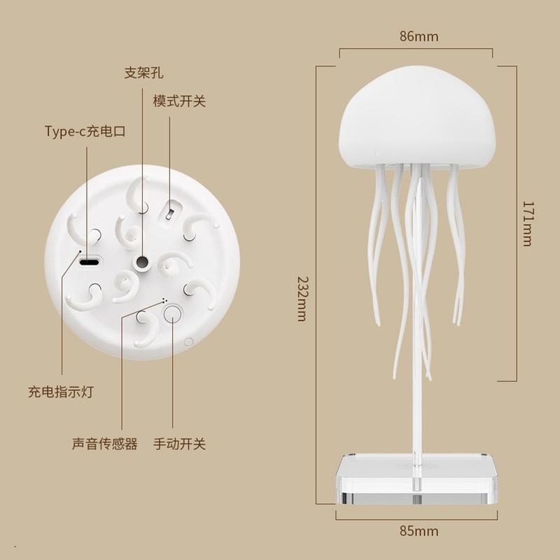Lydaktivert smart stemningslampe med maneter - 600 mAh oppladbart nattlys med roterende tentakler