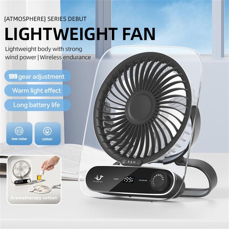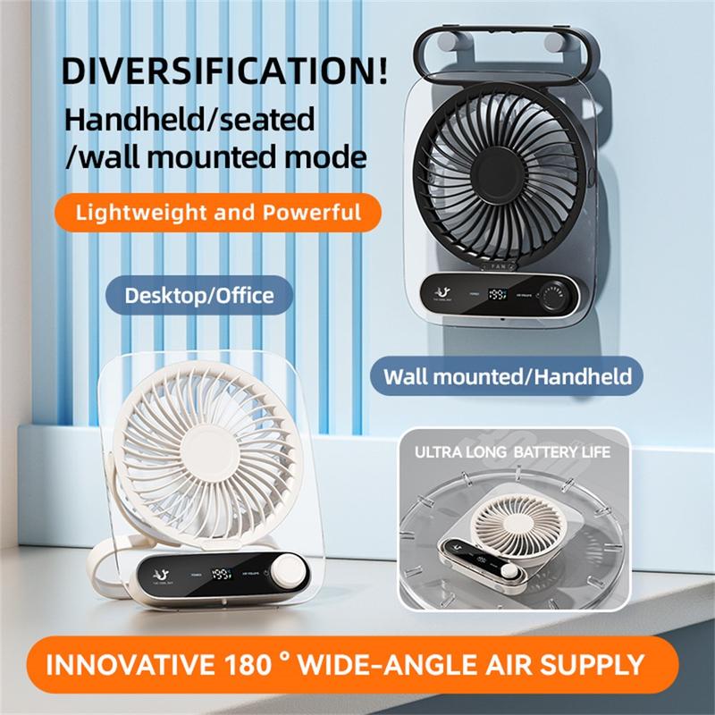 JF136 Vidvinkel bærbar bord- og hengevifte / 199-trinns 3000 mAh USB-C oppladbar kjøler