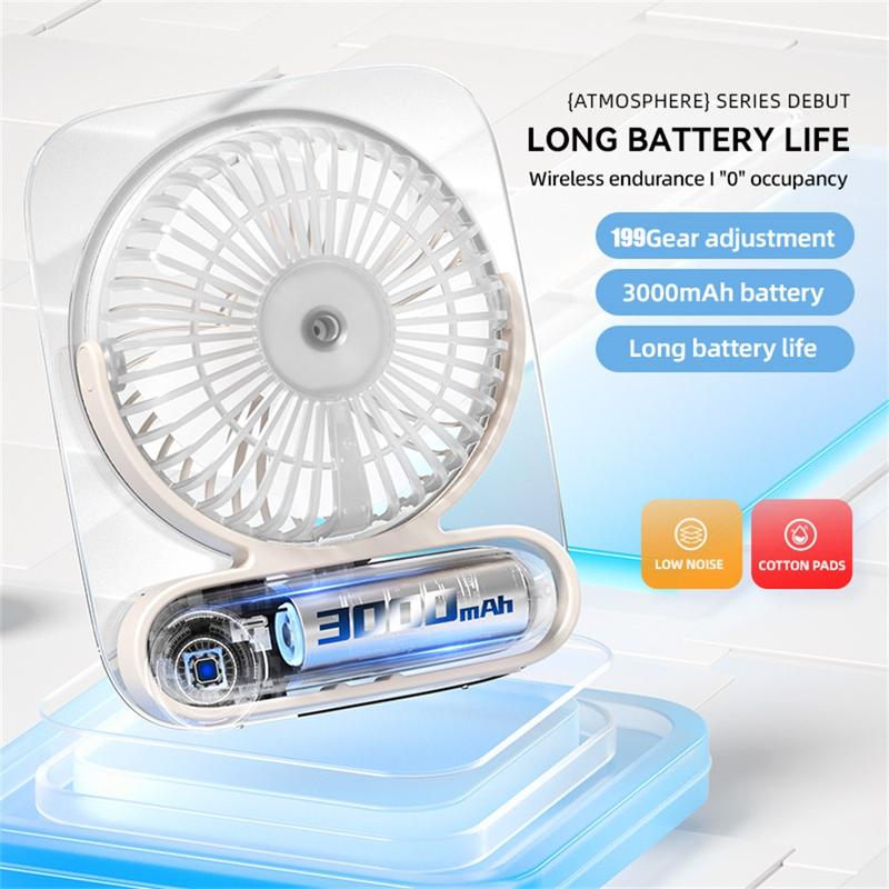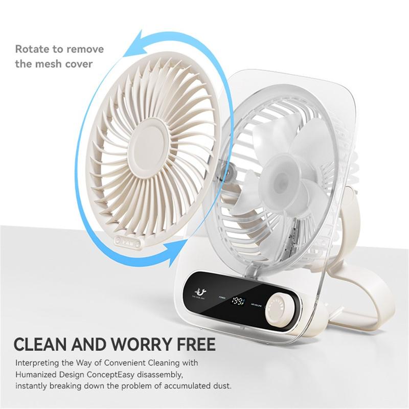 JF136 Vidvinkel bærbar bord- og hengevifte / 199-trinns 3000 mAh USB-C oppladbar kjøler