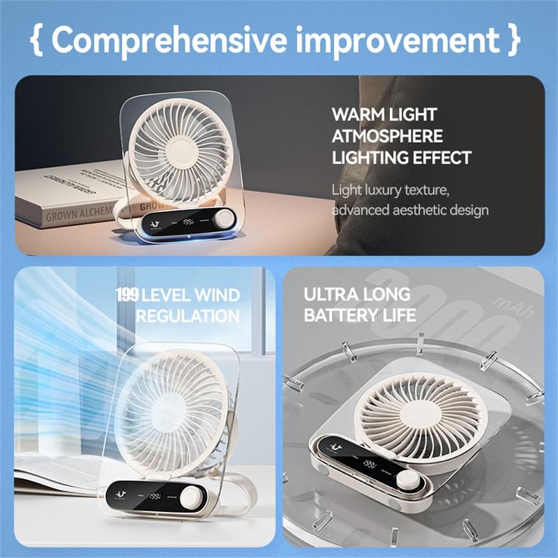 JF136 Vidvinkel bærbar bord- og hengevifte / 199-trinns 3000 mAh USB-C oppladbar kjøler