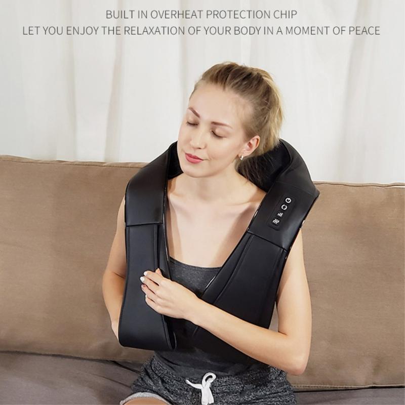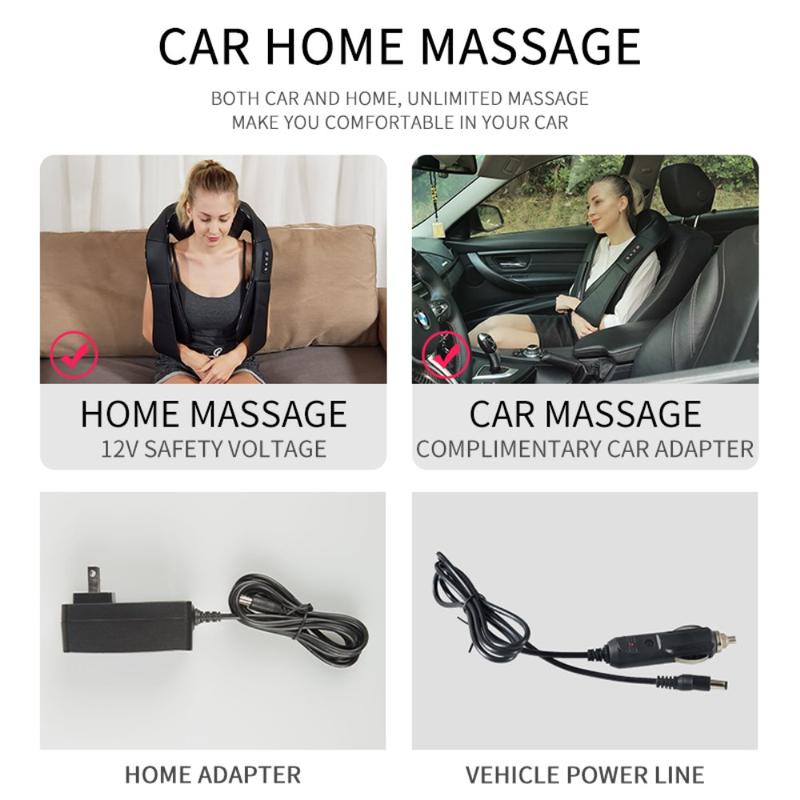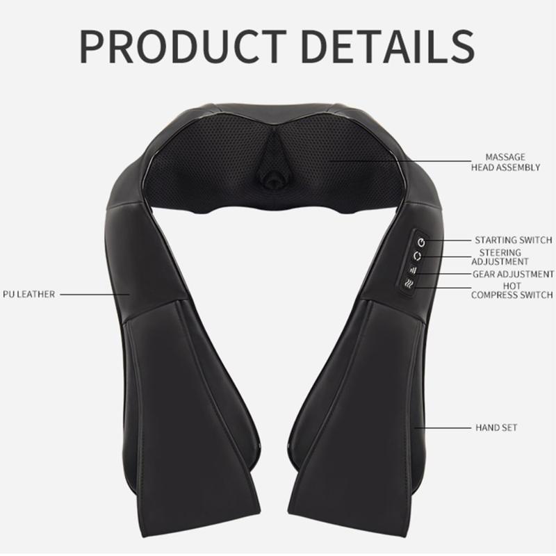 Bytt ut anspenthet og reisetretthet med lindring på spa-nivå på bare 15 minutter. JH-R2 kombinerer 16 toveis shiatsuknuter, tre intensitetsinnstillinger og innebygd infrarød varme i en pute av avtørkbart PU-lær som drives fra enten den medfølgende EU-strømadapteren eller bilens 12 V-uttak. Med de lange trekkstroppene kan du stille inn det perfekte trykket på nakke, skuldre, rygg eller midje - og en automatisk avstengning sørger for at du er trygg hvis du sovner.