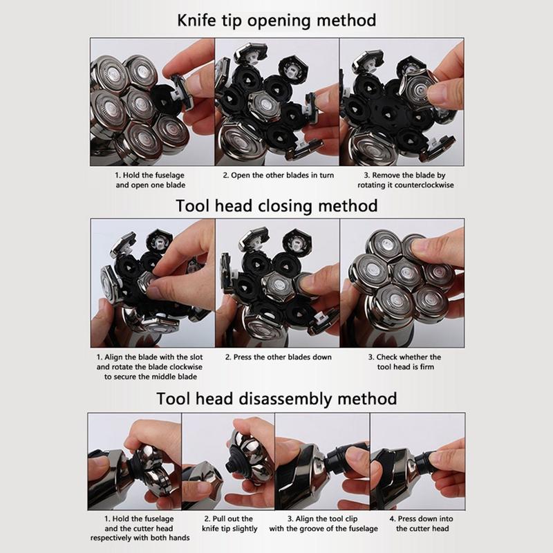 - De flytende barberhodene er konstruert for å tilpasse seg ansikts- og hodebunnskonturene, noe som reduserer irritasjon og forbedrer barberingskvaliteten.