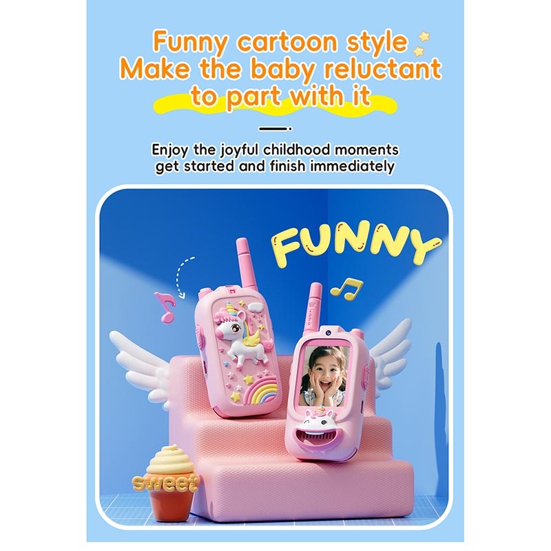 JK200 Interaktivt video walkie-talkie-sett for barn - 2,0" skjerm, 150-500 m rekkevidde, oppladbar toveiskommunikasjon