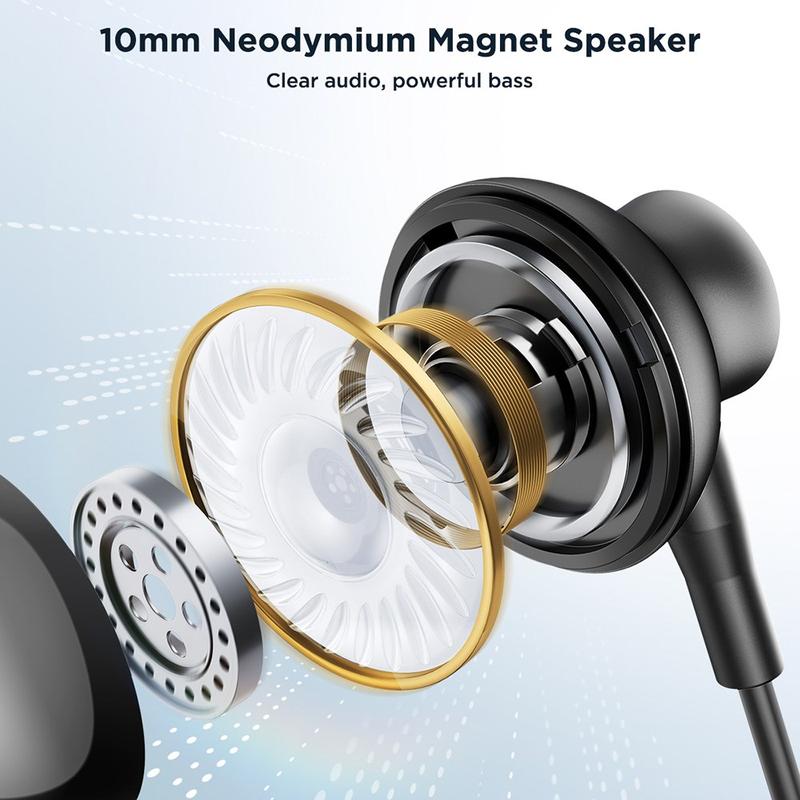 Joyroom JR-EC07 Metal Half-In-Ear Wired Earphones med Type-C-tilkobling kombinerer stil, komfort og funksjonalitet, noe som gjør dem til det perfekte tilbehøret for dem som ønsker pålitelig lyd av høy kvalitet i et elegant design.