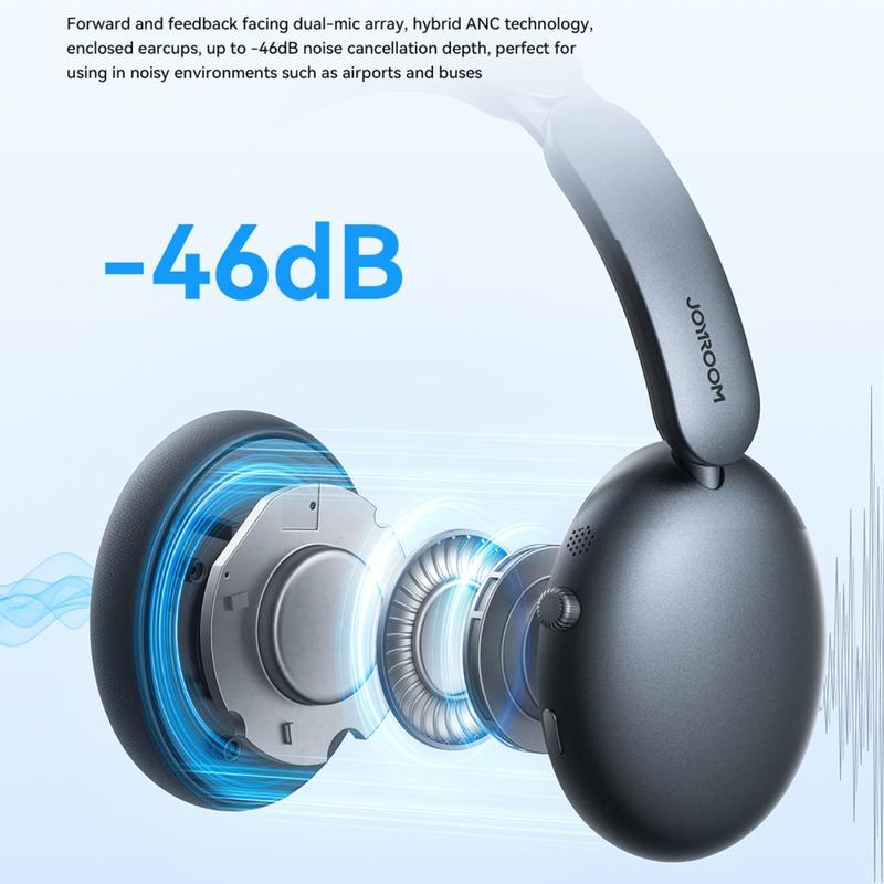 Joyroom JR-JH1 Bluetooth-hodetelefoner tilbyr førsteklasses lydkvalitet, avansert ANC-teknologi (Active Noise Cancelling) og trådløs brukervennlighet. Hodetelefonene er perfekte for lange lytteøkter og gir en oppslukende lyd med dyp bass og skarpe høyder. Den ergonomiske designen gir komfort i timevis, noe som gjør den ideell for musikkelskere, pendlere og fjernarbeidere.