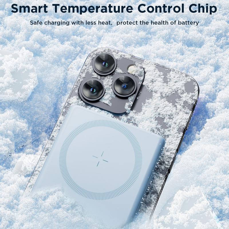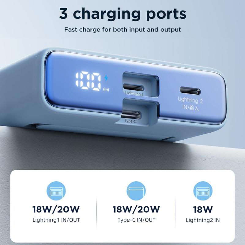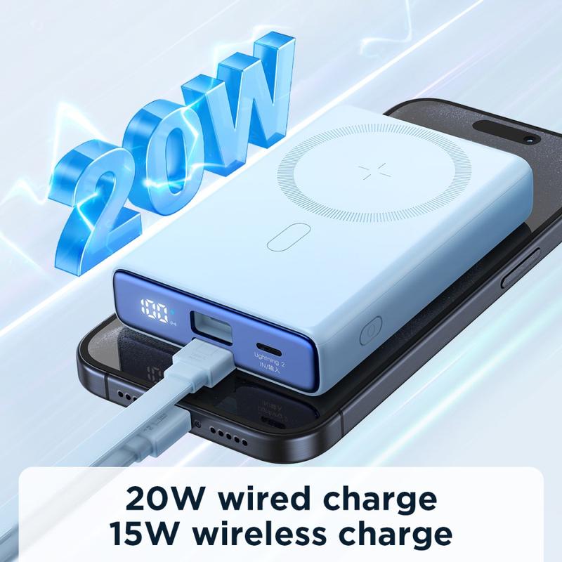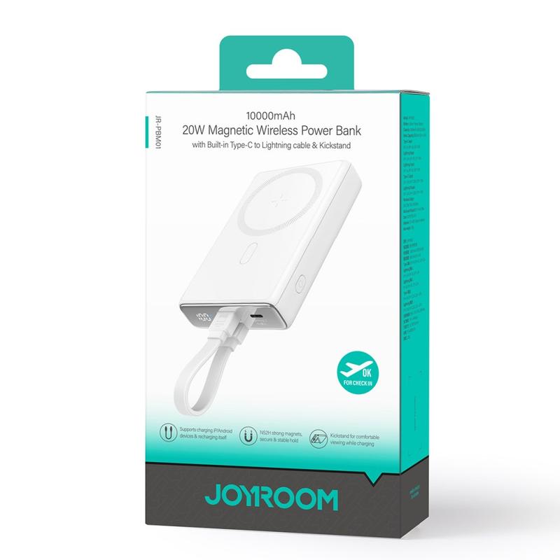 JOYROOM JR-PBM01 PD 20W 10000mAh magnetisk trådløs lader med magnetisk powerbank med innebygd kabel og støtte - hvit