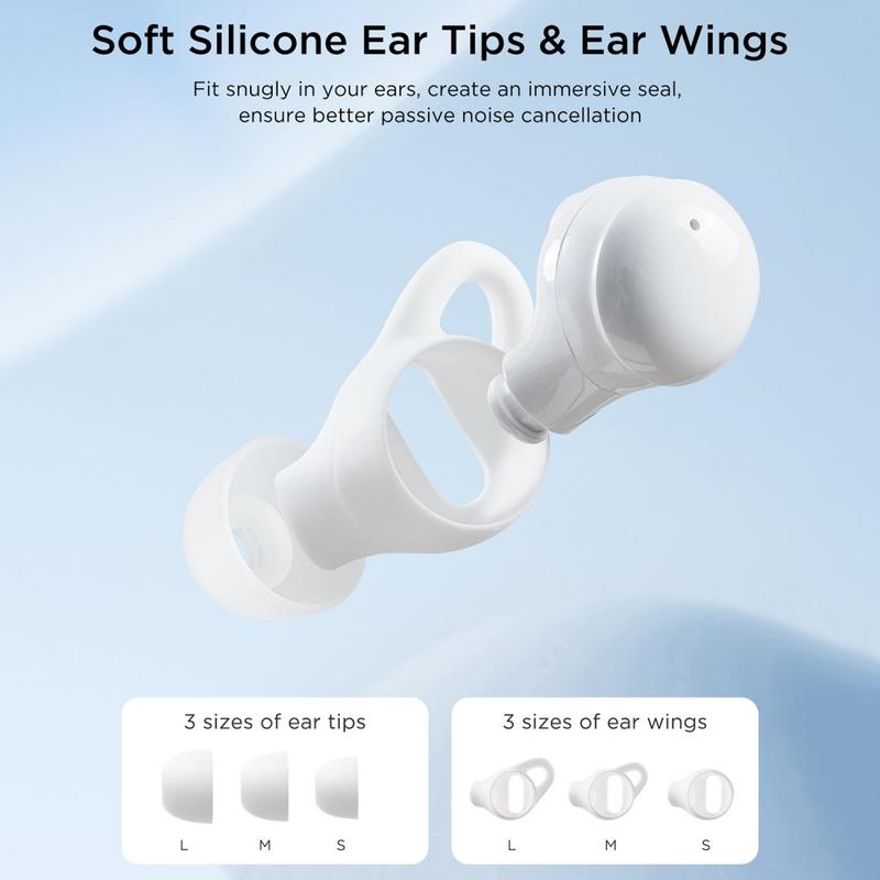 Designet for å passe godt inn i ørene, noe som gir komfort ved langvarig bruk og gjør det mulig å sove uavbrutt uten ubehag.