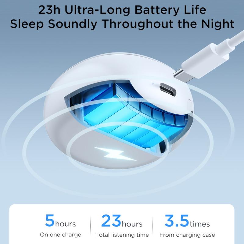 Hodetelefonene er utstyrt med ANC-støyisolasjon som blokkerer eksterne forstyrrelser og skaper et optimalt søvnmiljø ved å minimere lyder fra omgivelsene.
