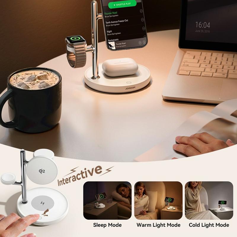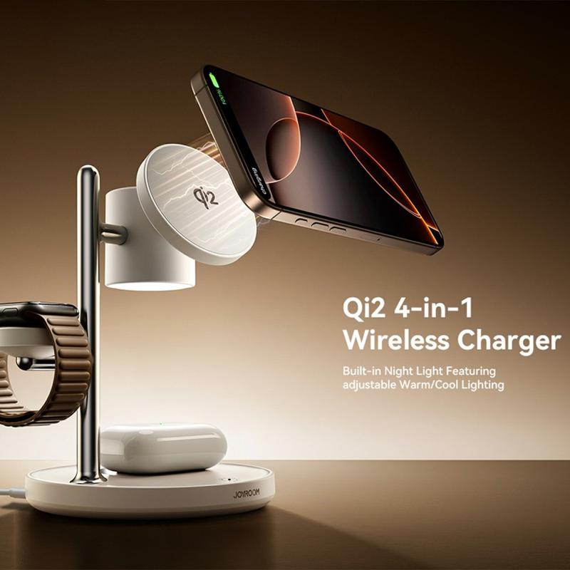 Joyroom JR-W23 Qi2 4-i-1 magnetisk trådløs lader - 15 W hurtigladestativ med nattlys