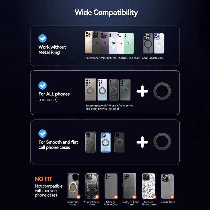 - Magnetisk feste: Dobbeltsidig, Magsafe-kompatibel