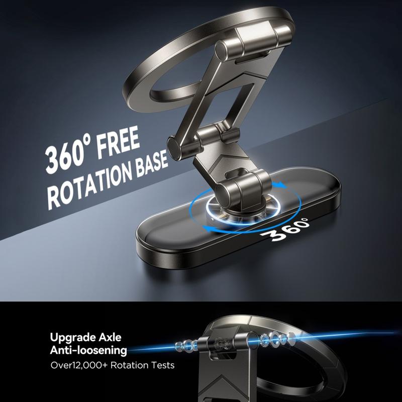 JOYROOM JR-ZS520 MagSafe-telefonholderen kombinerer førsteklasses materialer med en svært fleksibel design, noe som gir en stabil og håndfri visningsopplevelse i alle omgivelser. Stativet er laget av slitesterk sinklegering og gir en solid følelse av høy kvalitet, samtidig som det er pålitelig på lang sikt. Det tosidige magnetiske festet er fullt kompatibelt med Magsafe, noe som gjør det enkelt å montere og fjerne med én hånd. Med 360° rotasjon og en 3-foldet justerbar arm kan du plassere enheten i den ideelle vinkelen for videosamtaler, treningsøkter, navigering eller vanlig visning. Enten du er hjemme, på kontoret, på treningssenteret eller til og med på golfbanen, gir dette kompakte stativet sterk magnetisk stabilitet og uovertruffen allsidighet.