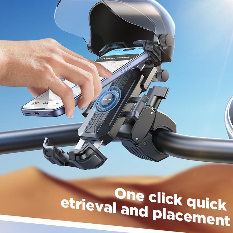 Kjør med bedre sikt og sikrere tilgang til navigasjon med JOYROOM JR-ZS526 telefonholder. Den er laget for elsykler, sykler og motorsykler, og har en 270 graders justerbar solskjerm som hjelper til med å blokkere gjenskinn og refleksjoner, slik at skjermen forblir lesbar i sterkt dagslys. En solid låsemekanisme og metallklemmer holder telefonen stabil på ujevne veier, mens hurtigutløserknappen lar deg montere eller fjerne enheten med én hånd på få sekunder.
