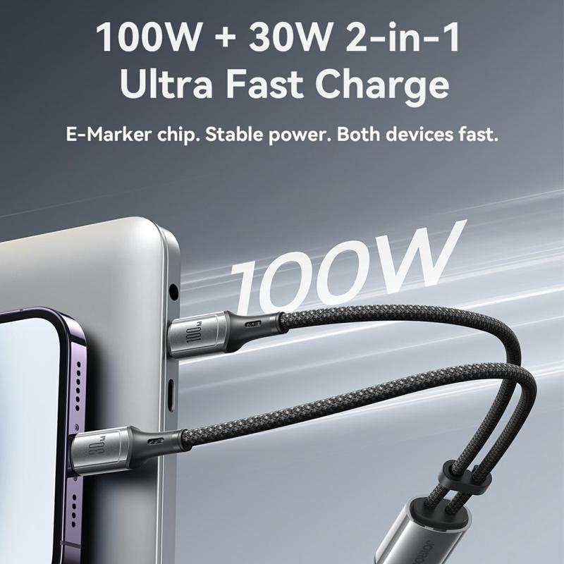 Joyroom S-A57 100W 2-i-1 ladekabel - 1.5m - grå
