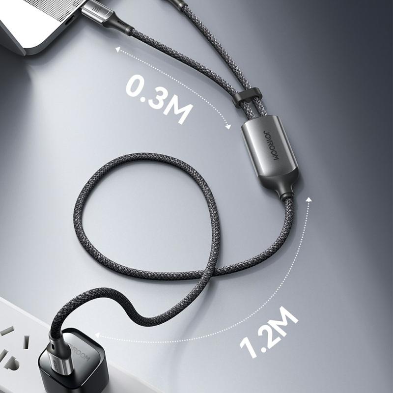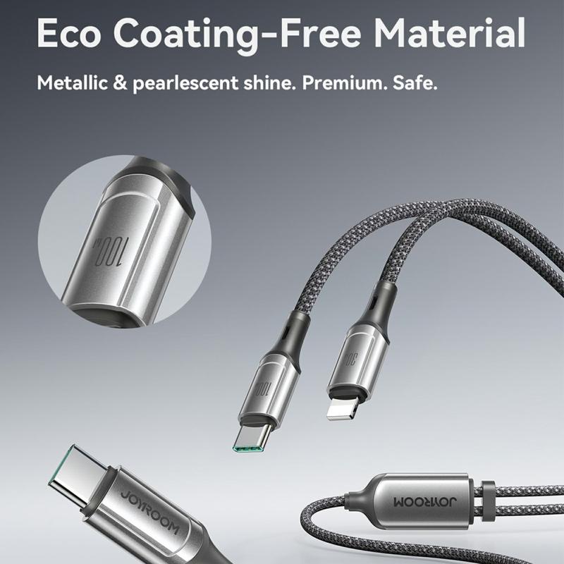 Joyroom S-A57 100 W 2-i-1-ladekabel - USB-C til USB-C + Lightning Dual Connector, 480 Mbps datasynkronisering, nylonflettet