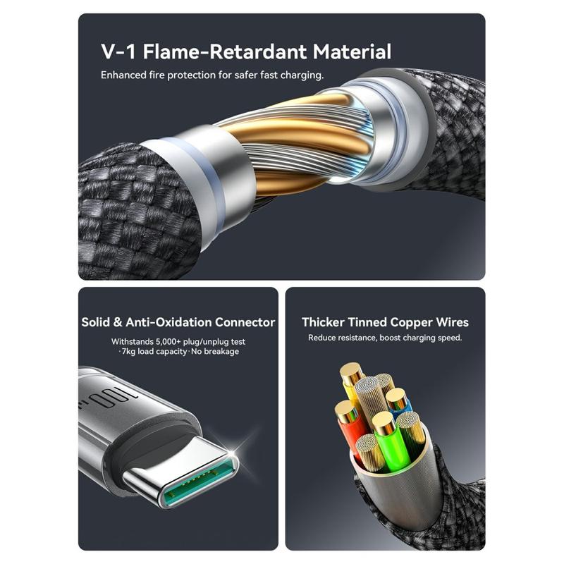Lad to USB-C-enheter samtidig med JOYROOM S-A57 USB-C til dobbel USB-C-kabel. Kabelen er laget for moderne bærbare datamaskiner, nettbrett og smarttelefoner, støtter opptil 100 W hurtiglading og bruker en E-Marker smart styringschip for å levere stabil strøm til kompatible enheter. Du får også 480 Mbps dataoverføring for daglig synkronisering, slik at én kabel dekker både lading og filoverføring. Den slitesterke 48-tråds nylonflettede konstruksjonen er utformet for å motstå slitasje og daglig bøying, mens den medfølgende kabelorganisatoren holder orden på skrivebordet eller i vesken. Med testet holdbarhet, som mer enn 10 000 innføringer og en belastningskapasitet på 7 kg, er den laget for hyppig bruk.