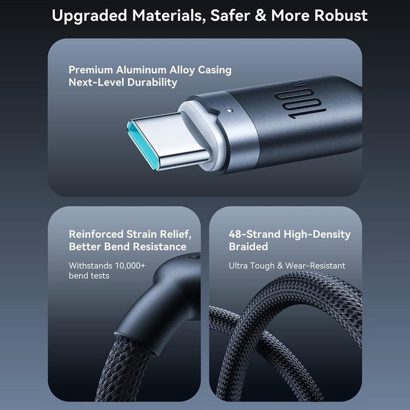 100 W USB-C-kabler er spesielt populære fordi de ikke bare kan lade telefoner og nettbrett, men også mange moderne bærbare datamaskiner og større enheter. Flettede kabler foretrekkes ofte til daglig bruk fordi de tåler slitasje bedre enn vanlige plastbelagte kabler, spesielt når de bæres i vesker eller brukes ofte.