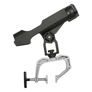 - En stangholder med klemme er populær fordi den er rask å montere og ikke krever boring i båten eller plattformen.