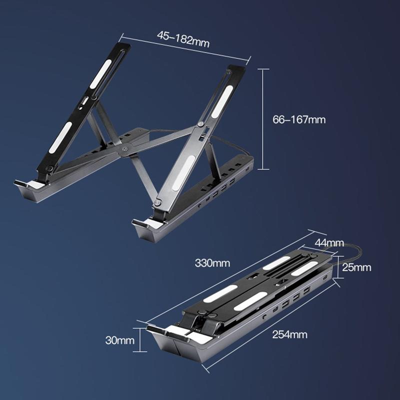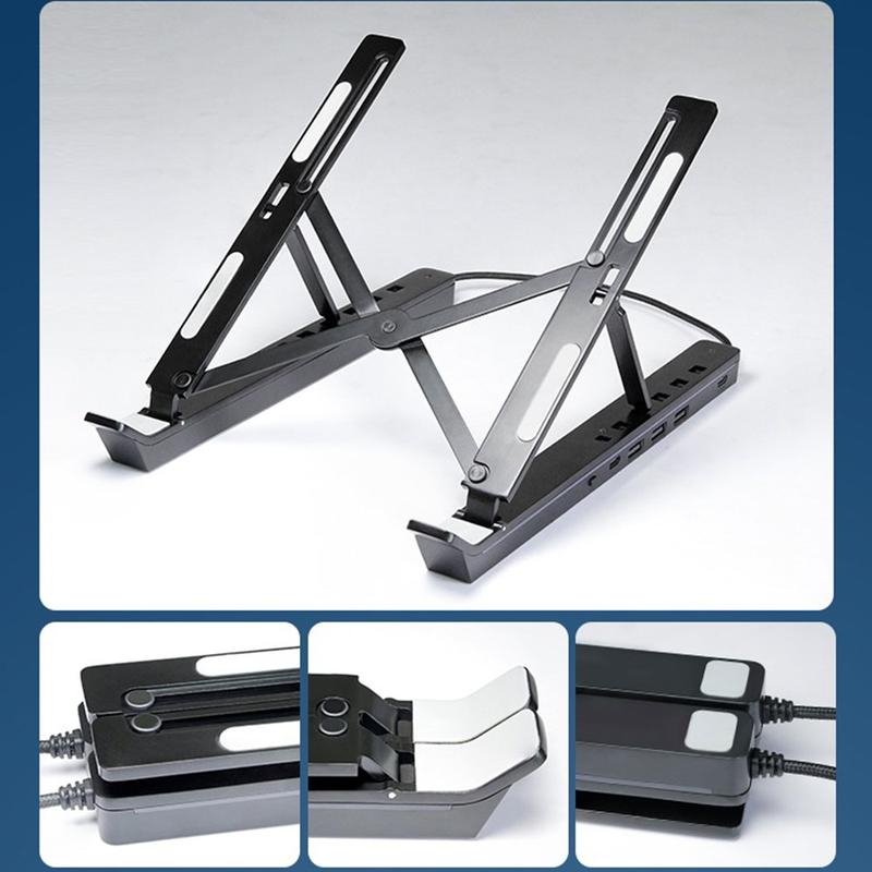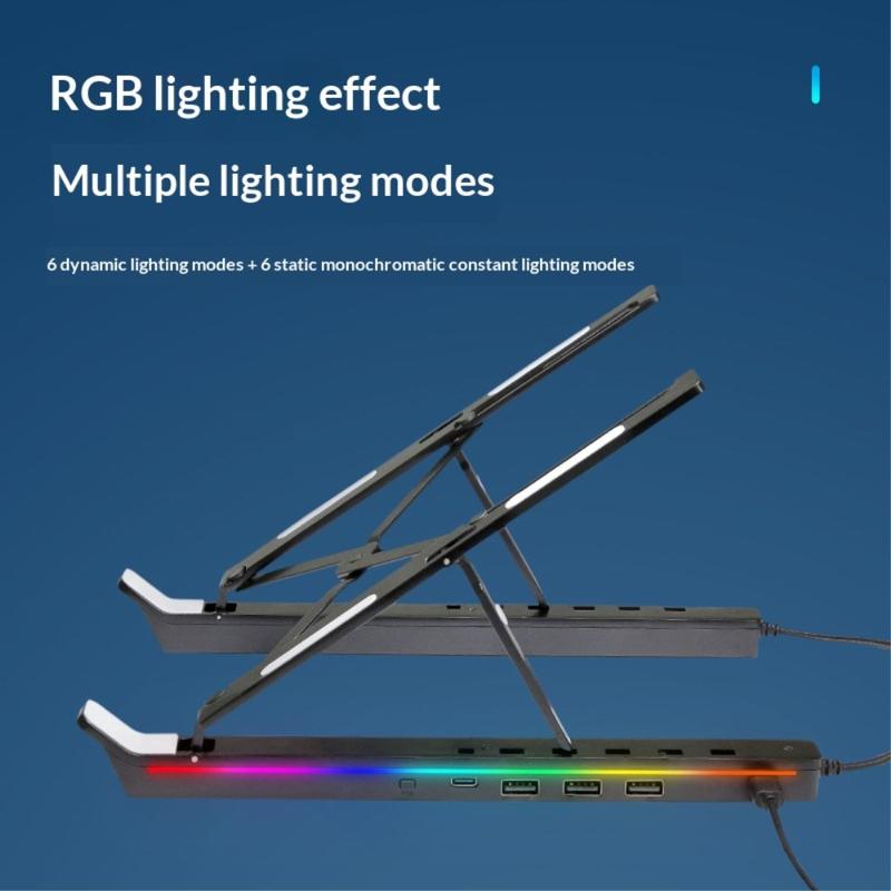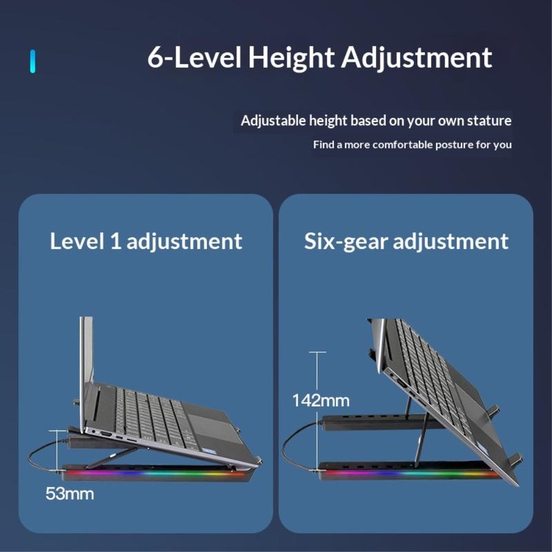 6-høydejusterbart aluminiumsstativ for bærbar PC med RGB-bakgrunnsbelysning og integrert USB-hub - sammenleggbart stativ for bærbare PC-er for 12-18" enheter