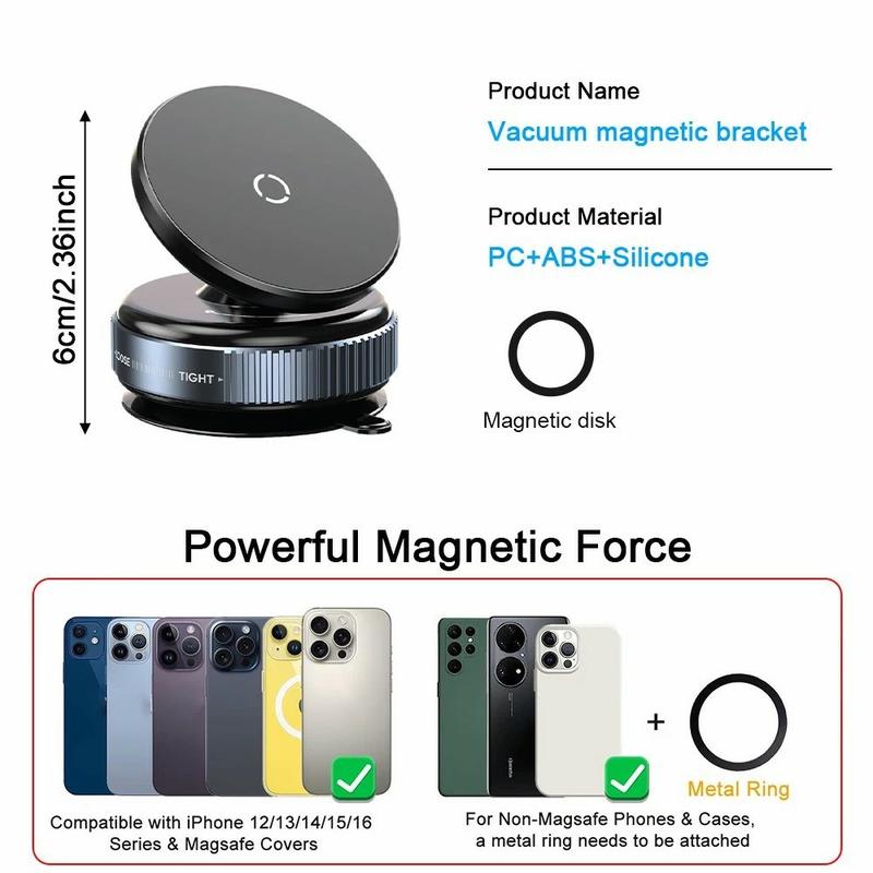 K009 Kompakt magnetisk biltelefonfeste - 360° roterende mekanisk vakuumsugeholder for dashbord og frontrute