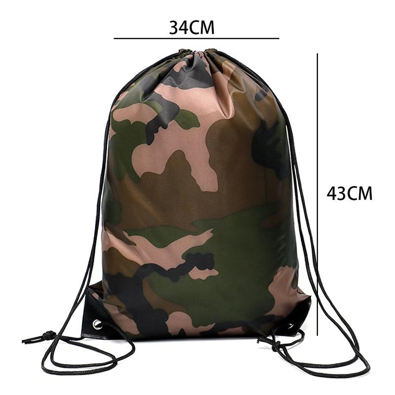 Kamuflasje-ryggsekk med løpesnor - 210D polyester sportsgymnastikkveske for utendørs camping, fotturer og reiser