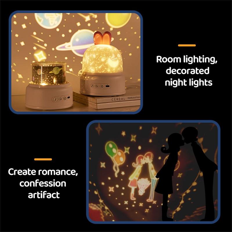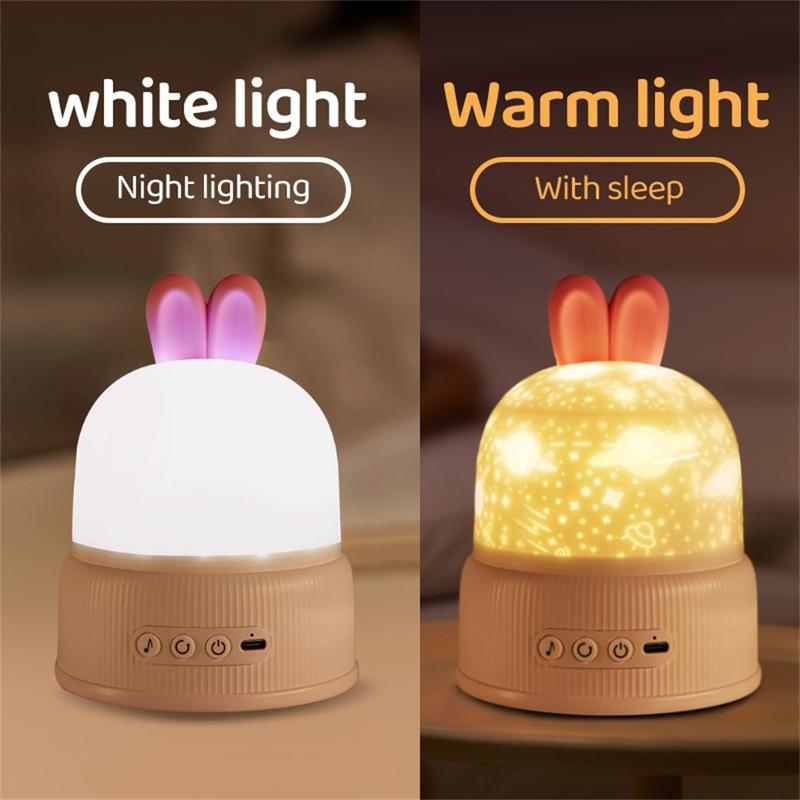 Kaninprojeksjonslampe med musikk - USB-drevet nattlys
