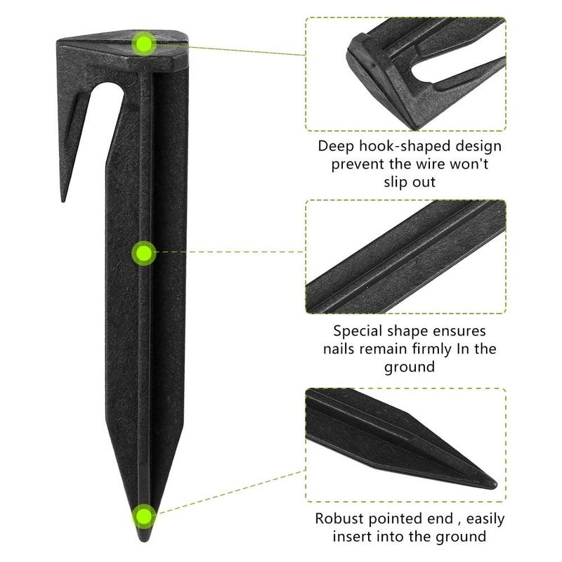 - Optimal størrelse: Hver stift er 8,5 cm lang, noe som er ideelt for å feste ledninger og kantmaterialer godt i bakken.