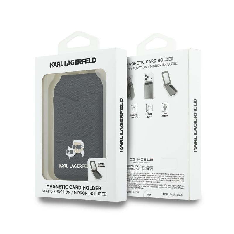 Karl Lagerfeld Karl & Choupette magnetisk kortholder med stativ og speil - MagSafe-lommebok med innebygd speil, kortspor og støtteben