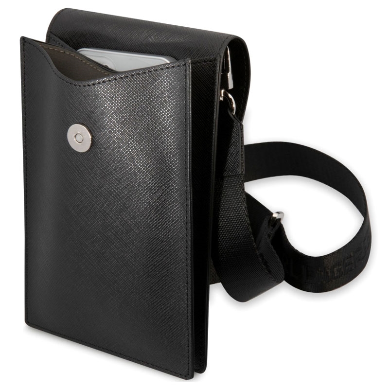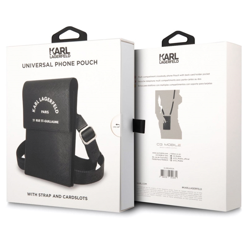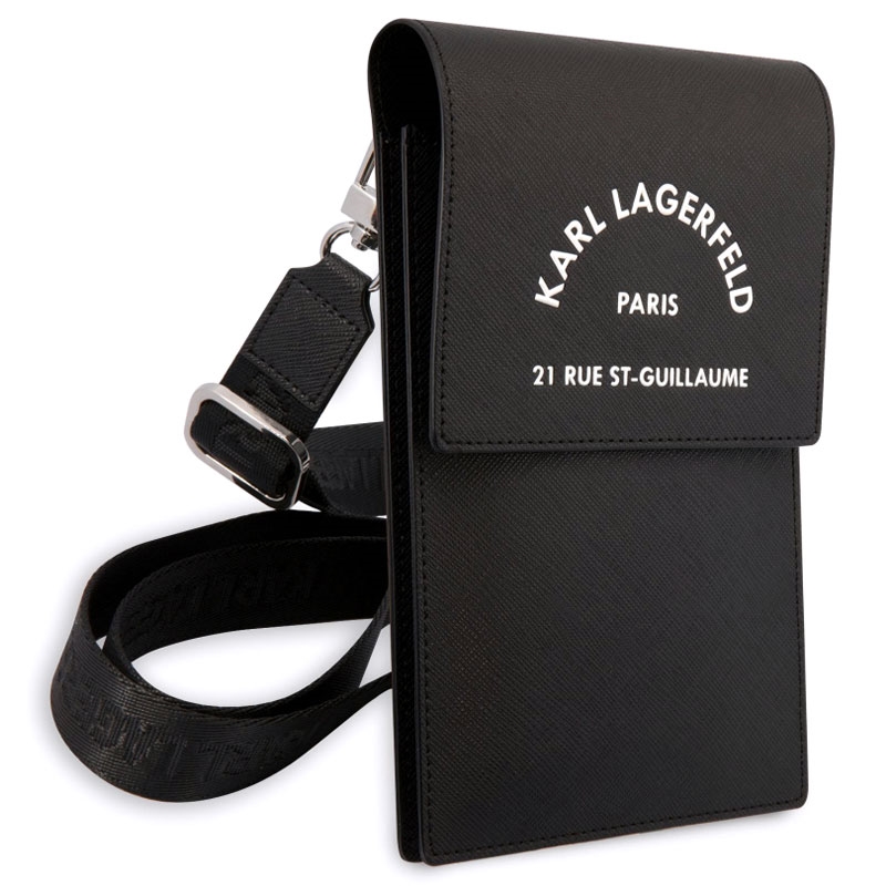 Karl Lagerfeld Smartphone Skuldertaske - Paris 21 Rue St-Guillaume - Sort er den perfekte kombinasjonen av stil og funksjonalitet... Denne elegante skuldervesken er designet for å beskytte og bære smarttelefonen din med letthet, samtidig som den tilfører et snev av luksus til din daglige garderobe. Med sin sofistikerte sorte farge og ikoniske Karl Lagerfeld-branding er denne vesken et must-have for enhver moteinteressert person.