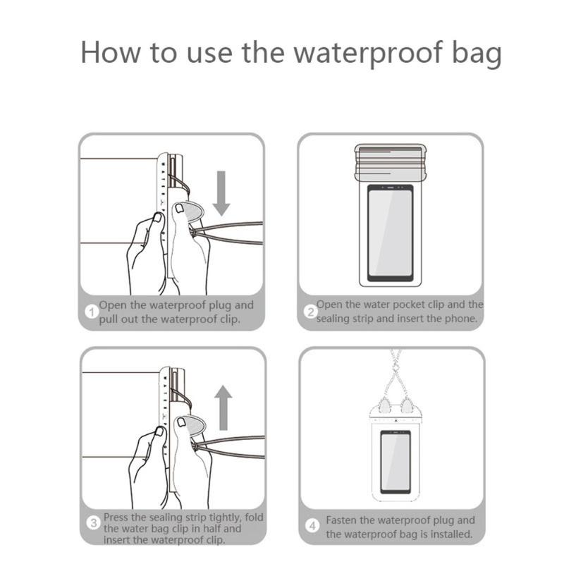 Perfekt for bassenger, strender, fiske, svømming, seiling, ski, båtliv, kajakkpadling, snorkling, tubing, rafting, dusjing, badstue og andre vannparkaktiviteter, holder telefonen og lommeboken helt tørr og trygg