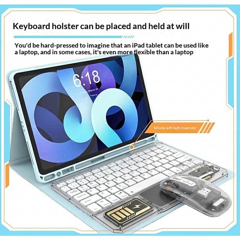 Oppgrader skrivebordet eller nettbrettoppsettet ditt med det gjennomsiktige Bluetooth-tastatur- og musesettet KB333. Dette trådløse settet er utviklet for arbeid, studier og daglig bruk, og kombinerer et kompakt tastatur, innebygd touchpad og en matchende mus i ett stilig oppsett. Det gjennomsiktige designet med RGB-bakgrunnsbelysning gir det et moderne utseende, mens 3-kanals tilkobling gjør det enkelt å bytte mellom flere enheter.