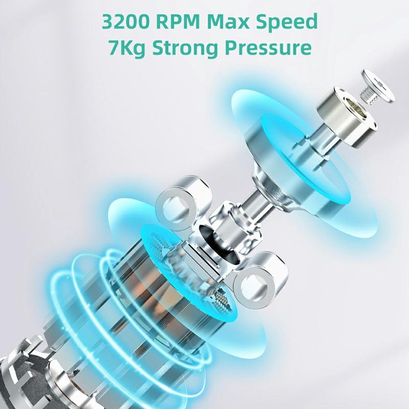 - Justerbar intensitet med trinnløs hastighetskontroll: Den er utstyrt med en børsteløs motor med et hastighetsområde på 1000-3200 o/min (±10 %), slik at du kan tilpasse massasjeintensiteten til ditt eget komfortnivå.