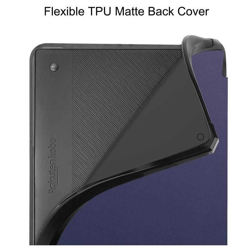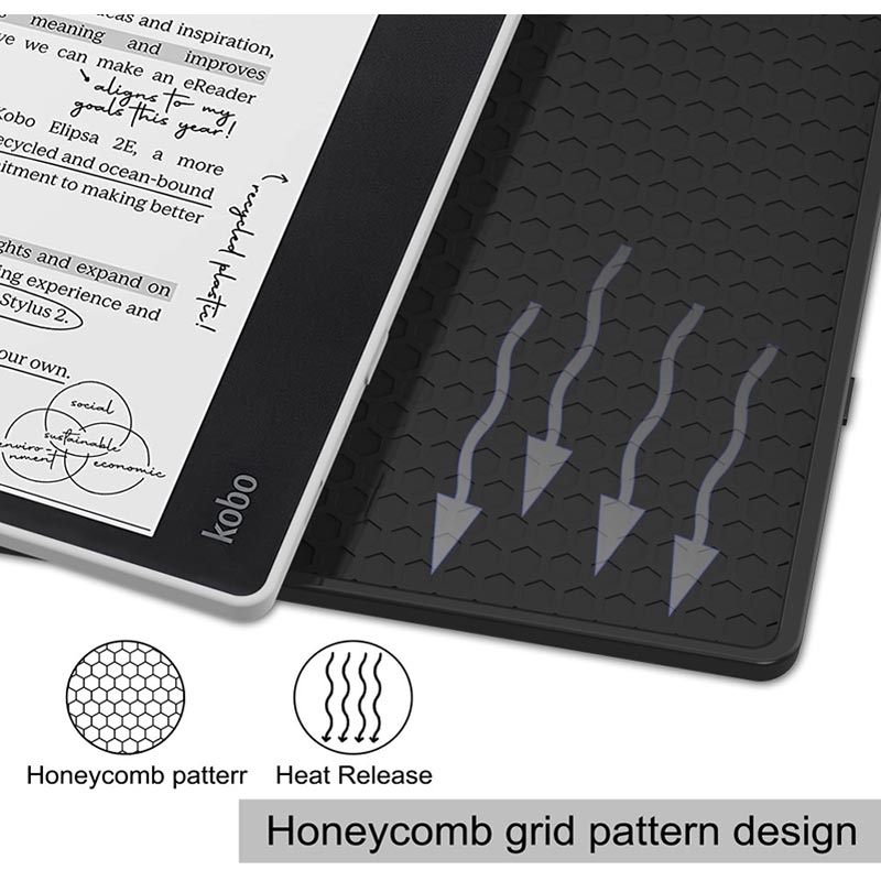Dette etuiet er laget av polyuretan og TPU-materialer av høy kvalitet, med et enkelt og fasjonabelt utseende. Den er laget for å beskytte din Kobo Elipsa 2E og har et origami -stativ som gir deg flere syns- og skrivevinkler. Takket være den intelligente på /av funksjonen, slår dette folio-etuiet automatisk på eller av skjermen når du åpner eller lukker frontklaffen.
