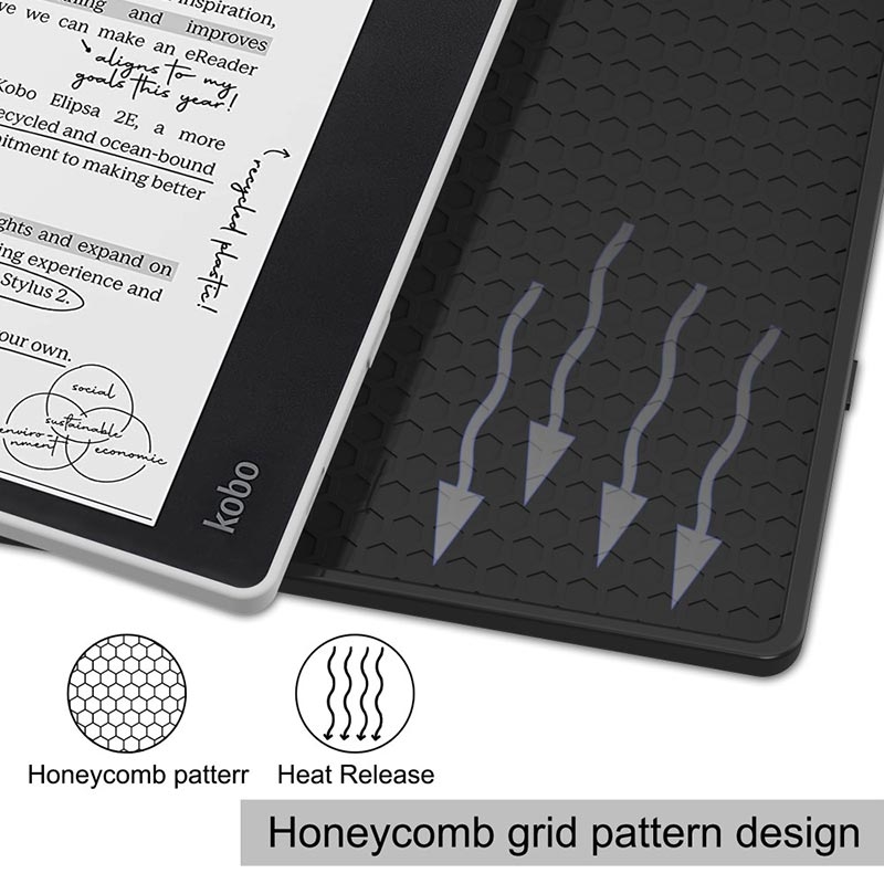 Dette etuiet er laget av polyuretan og TPU-materialer av høy kvalitet, med et enkelt og fasjonabelt utseende. Den er laget for å beskytte din Kobo Elipsa 2E og har et origami -stativ som gir deg flere syns- og skrivevinkler. Takket være den intelligente på /av funksjonen, slår dette folio-etuiet automatisk på eller av skjermen når du åpner eller lukker frontklaffen.