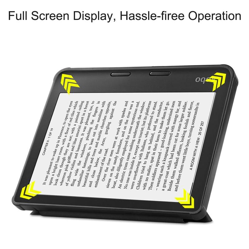Dette etuiet er laget av polyuretan og TPU-materialer av høy kvalitet, med et enkelt og fasjonabelt utseende. Den er laget for å beskytte din Kobo Libra 2 og har et origami -stativ som gir deg flere syns- og skrivevinkler. Takket være den intelligente på /av funksjonen, slår dette folio-etuiet automatisk på eller av skjermen når du åpner eller lukker frontklaffen.