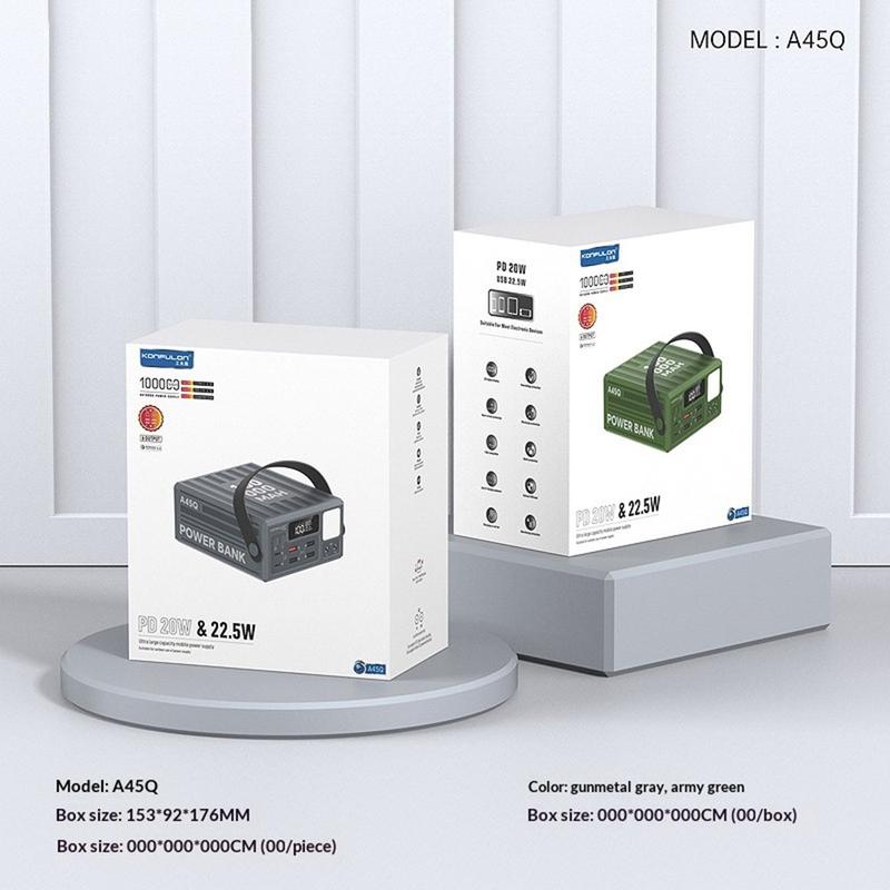 Konfulon A45Q Powerbank 100000mAh - 22.5W hurtigladestasjon med LED-display og 7 porter