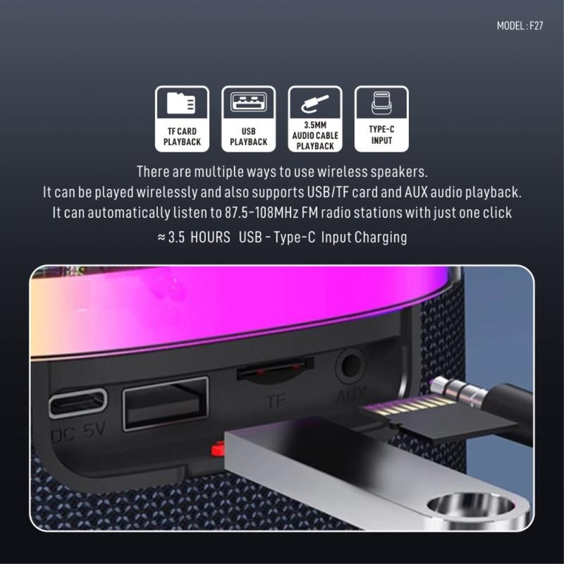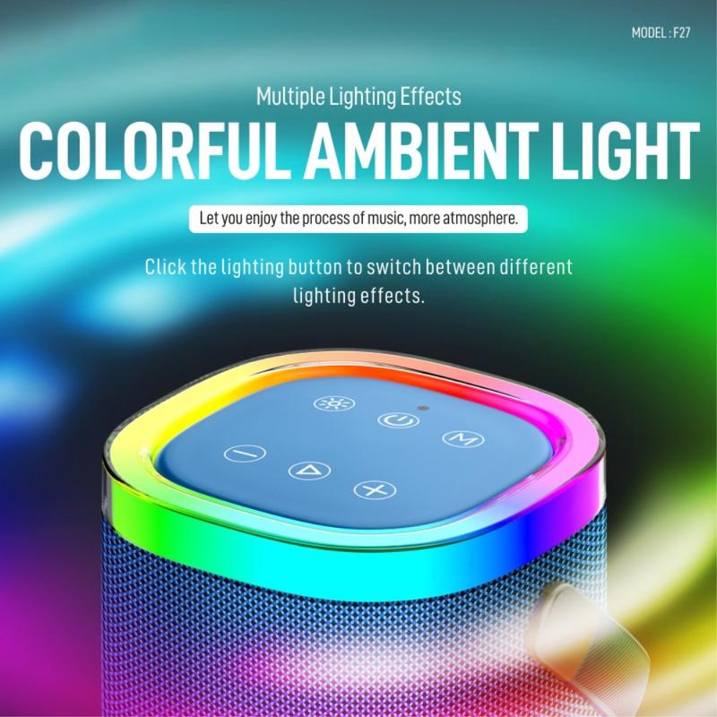 KONFULON F27 kombinerer sterk stereolyd med trådløs frihet og en innebygd mikrofon, noe som gir deg fleksibilitet til å nyte musikk, synge eller snakke hvor som helst. Det er et kompakt kraftverk som er designet for å gjøre hvert øyeblikk mer musikalsk.