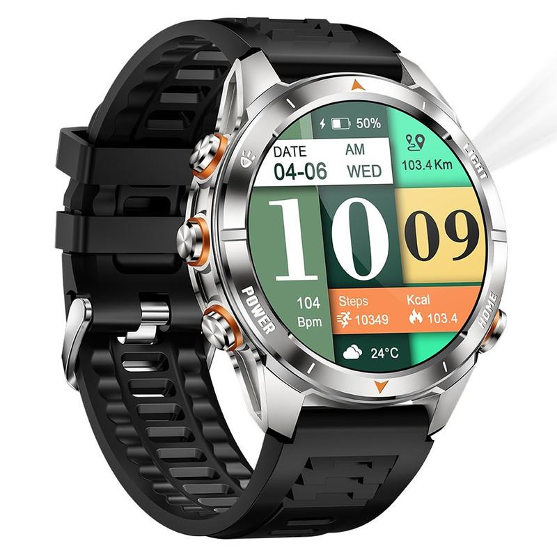 KT80s integrering av en lommelykt i smartklokkedesignet er et nikk til multifunksjonalitet, og henvender seg til brukere som trenger rask tilgang til lys under utendørsaktiviteter eller i nødsituasjoner.