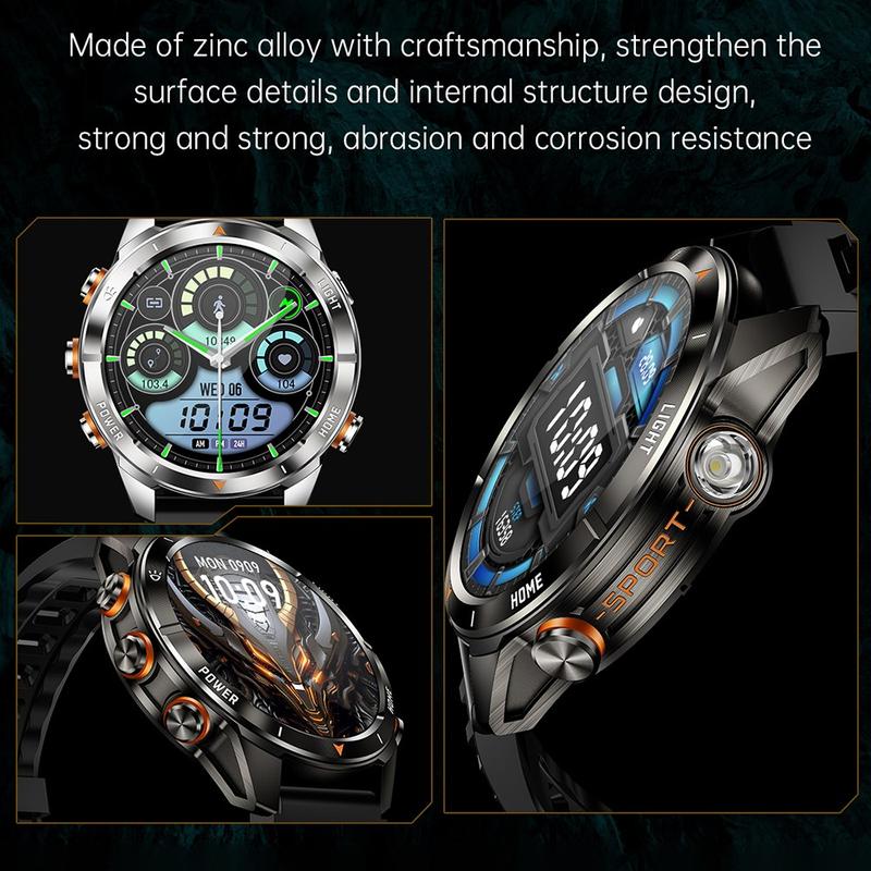 KT80 Sports Smart Watch - 3ATM vanntett, Bluetooth-samtaler, 1.46" HD-berøringsskjerm, integrert lommelykt