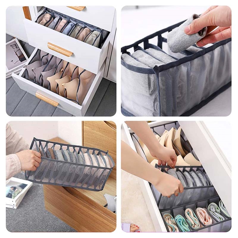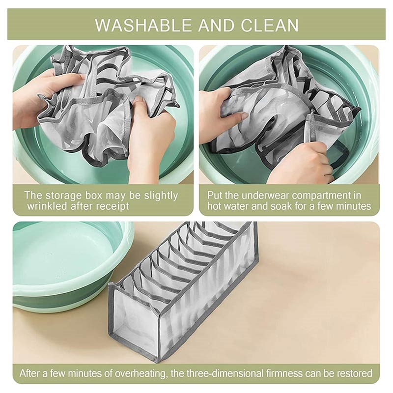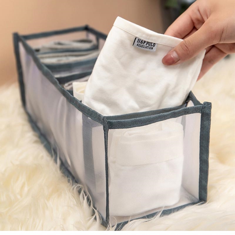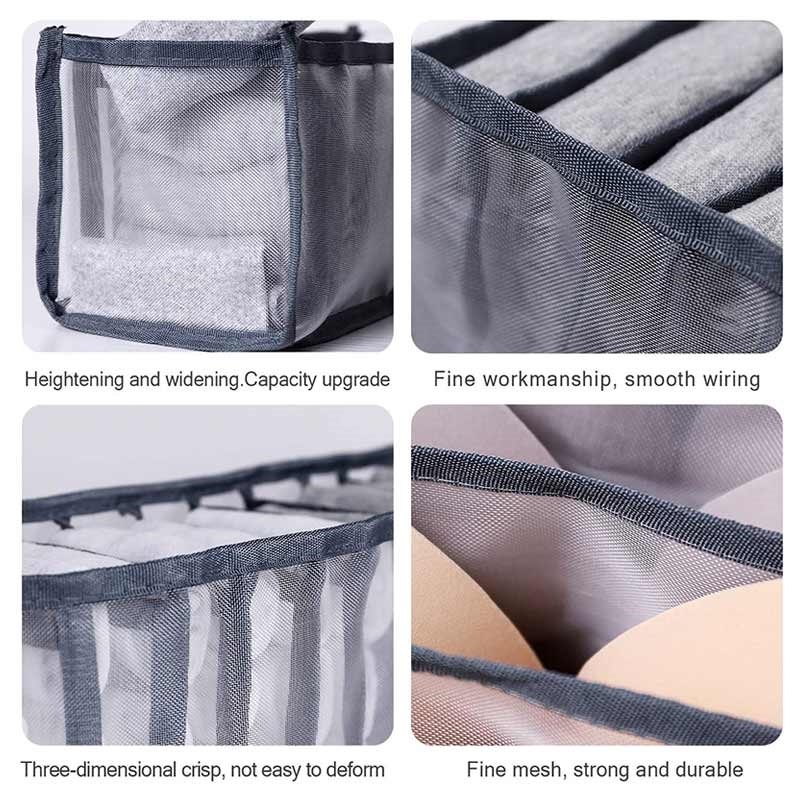 Organisator for sokker og undertøy - 7-gitters sammenleggbar oppbevaringsboks for skapdelere, nylon mesh