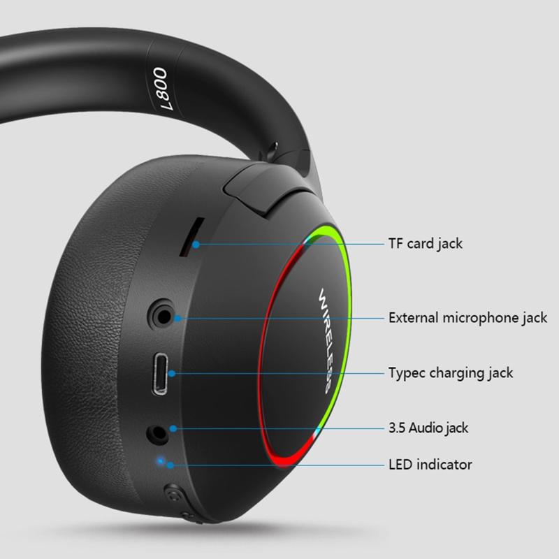 L800 Trådløst hodesett for musikk og spill Sammenleggbar Bluetooth-hodetelefon med LED-lys/mikrofon - Svart