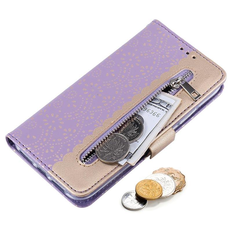 Denne utrolig stilige lommebokvesken med snøremønster beskytter din iPhone 14 Pro Max mot skader, og glidelåsen foran lar deg lagre sedler og mynter.