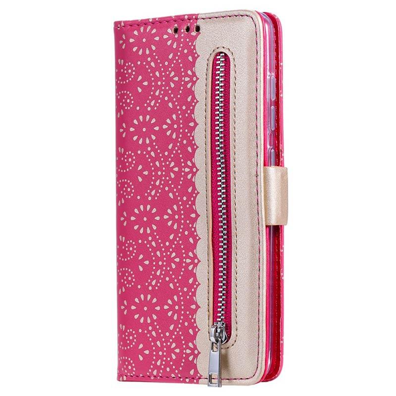 Den to-tone designen med blonder gir et unikt utseende, og det kan skryte av å være så praktisk som lommebok. I tillegg beskytter den Samsung Galaxy S23 5G mot skade og inkluderer en stropp slik at du kan bære den sikkert på travle steder.