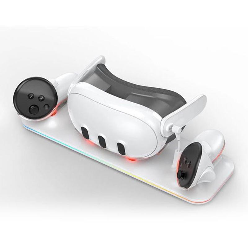 Ladestasjon for Meta Quest 3 VR-hodesett og ladestasjon for to kontrollere - hurtiglading, sikker plassering