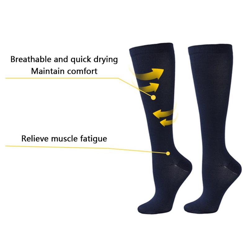 Disse kompresjonsstrømpene er en perfekt blanding av stil, funksjonalitet og holdbarhet, noe som gjør dem til et uunnværlig tilskudd til enhver idrettsutøvers garderobe. Enten du konkurrerer, trener eller ønsker lindring etter en lang dag, er disse strømpene løsningen for deg!
