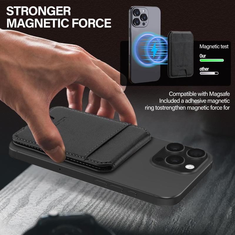 Denne magnetiske kortholderen tilbyr en smart balanse mellom funksjonalitet og stil. Den forenkler hva du har med deg, gir deg et nyttig stativ for hverdagsbruk og beskytter sensitive kortdata - alt i en elegant design. Ideell for brukere som foretrekker et rent, organisert oppsett uten å gi avkall på bekvemmeligheten.