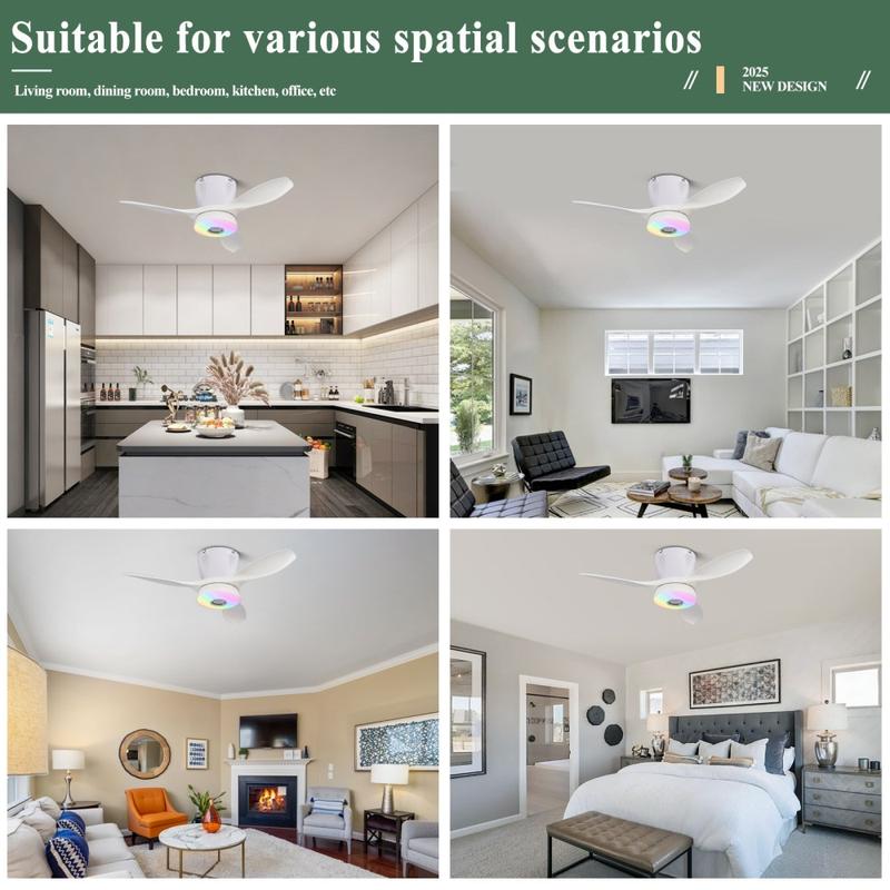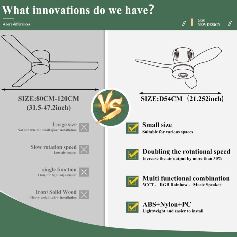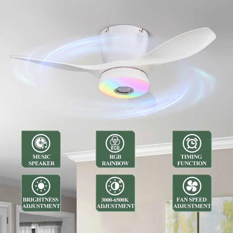 Bytt ut rot med stil: Denne elegante takarmaturen på 54 cm kombinerer en børsteløs vifte med tre hastigheter, fargeskiftende lysdioder og en 3 W Bluetooth-høyttaler i én minimalistisk plate som kjøler, lyser og underholder på én gang. Den installeres som en vanlig lampe, men leverer hvitt lys som kan dimmes, levende RGB-effekter og en stillegående bris som styres fra et slankt håndsett.