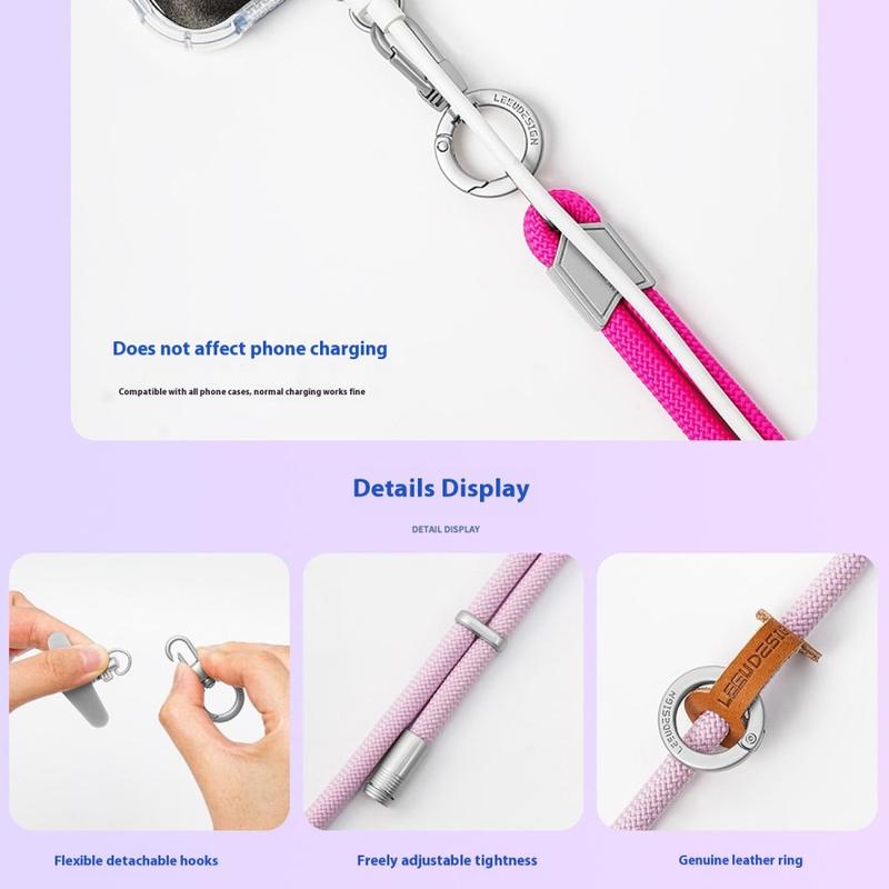 LEEU DESIGN Crossbody Phone Lanyard er den perfekte blandingen av komfort, styrke og stil. Med slitesterke materialer, justerbar lengde og en sikker festeanordning er det designet for alle som setter pris på både funksjonalitet og mote i tilbehøret sitt.