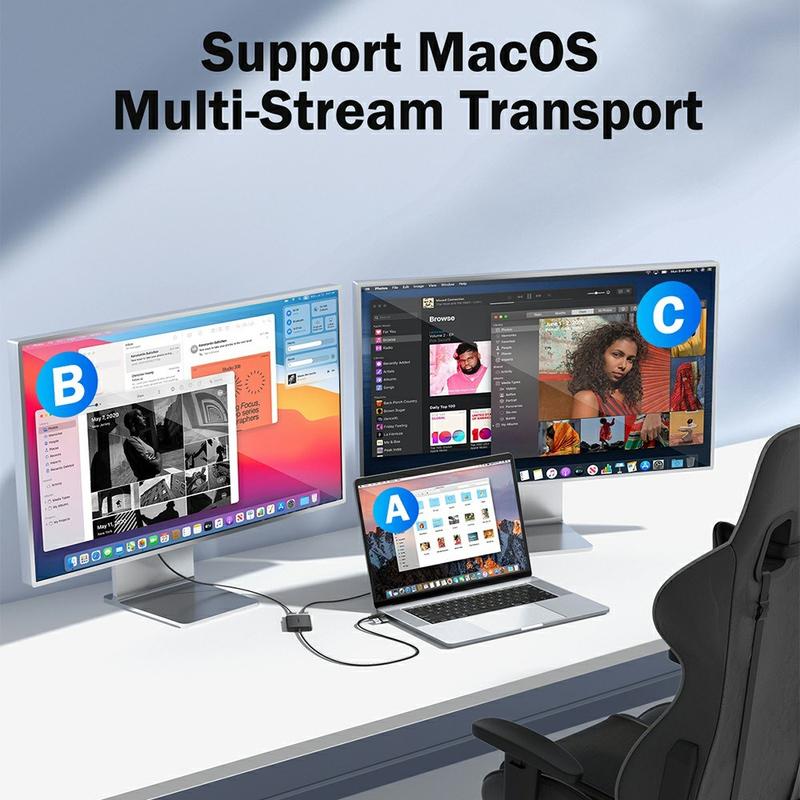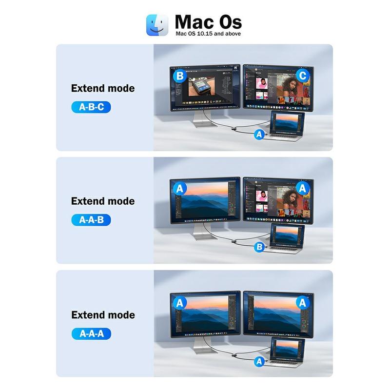 Denne adapteren har to HDMI-utganger, med støtte for utvidet og speilvendt skjermmodus. Den ene porten støtter 4K-oppløsning ved 30 Hz (via TUTULINK-driveren), mens den andre leverer 1080P Full HD, noe som muliggjør fleksible skjermkombinasjoner for arbeid, presentasjoner eller underholdning.