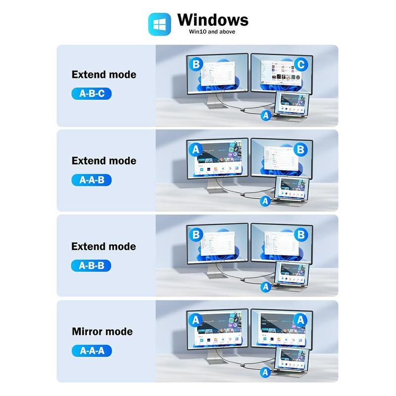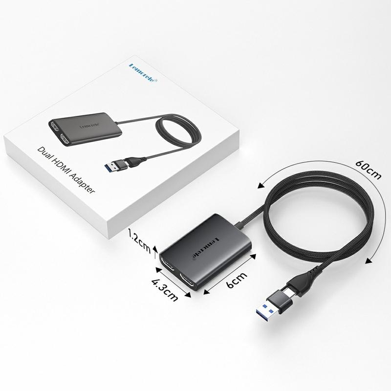 Lemorele HD10 USB/USB-C til dobbel HDMI-adapter er designet for å utvide eller speile den bærbare eller stasjonære skjermen over to eksterne skjermer. Ved å muliggjøre oppsett med to skjermer forbedrer den produktiviteten, multitaskingen og arbeidsflyteffektiviteten betydelig, både til profesjonell og daglig bruk.